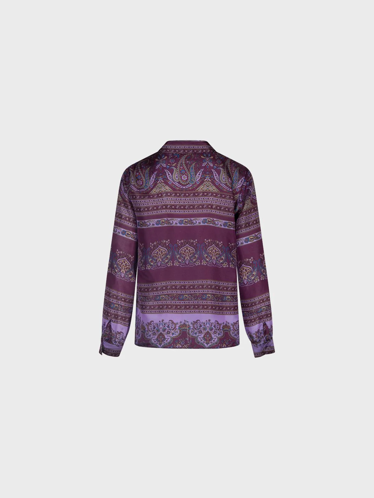 Camicia basica in haboutai di seta Stampa a pannello cachemireBottoni ricoperti